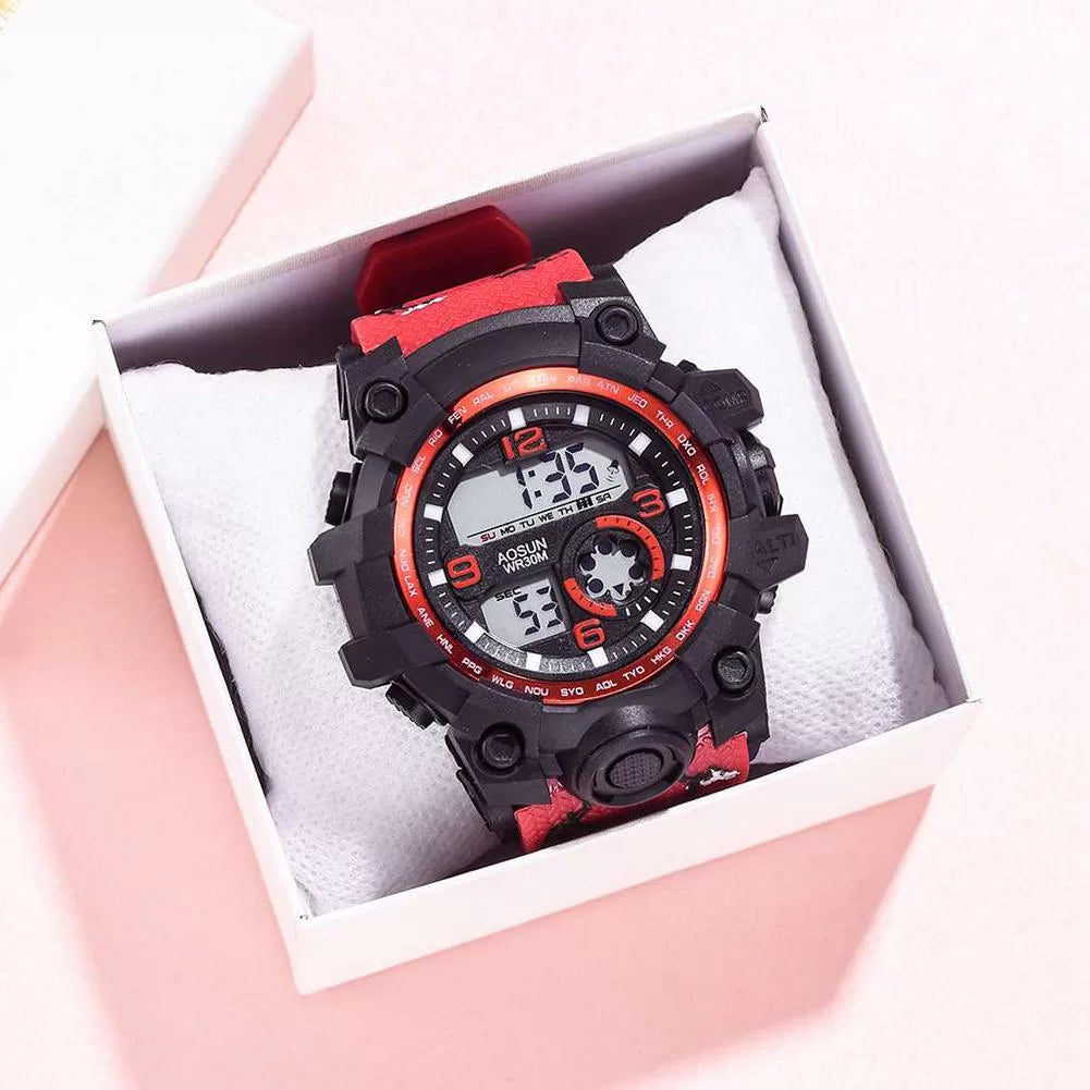 Ležerni sportski sat je moderan, uniseks i vodootporan digitalni sat, savršen za svakodnevno nošenje. Kombinuje sportski izgled i ležeran stil, zbog čega se lako uklapa uz različite odevne kombinacije.