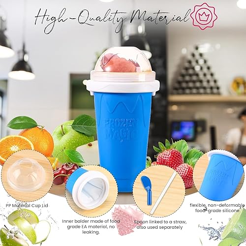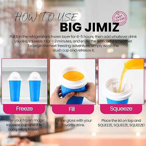 Dovoljno je da čašu ostavite u zamrzivaču, sipate omiljeni sok, mleko ili jogurt i stiskanjem čaše posmatrate kako se sadržaj pretvara u osvežavajuću poslasticu.