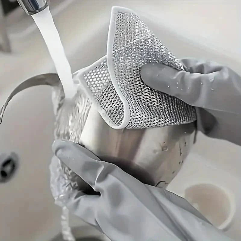 Više nema potrebe da trošite dodatno vreme na čišćenje tvrdokornih ostataka – žičana krpa kombinuje funkcionalnost žice, sunđera i magične krpe u jednom praktičnom rešenju.