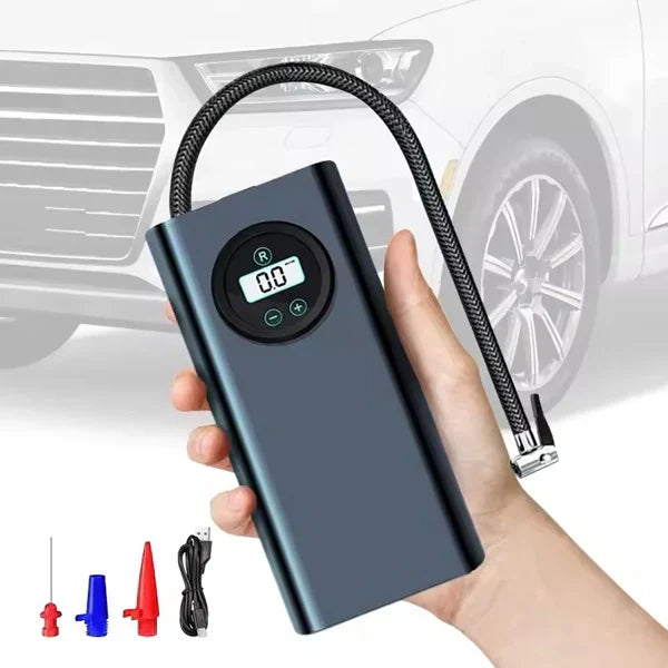Mini kompresor punjivi na baterije Mini kompresor punjivi na baterije omogućava brzo naduvavanje guma sa pritiskom do 120PSI. Poseduje funkciju power bank-a za Android i IOS uređaje. Maksimalni pritisak: 120PSI Punjiva baterija sa kapacitetom 25000mAh Praktičan nosač za bicikl