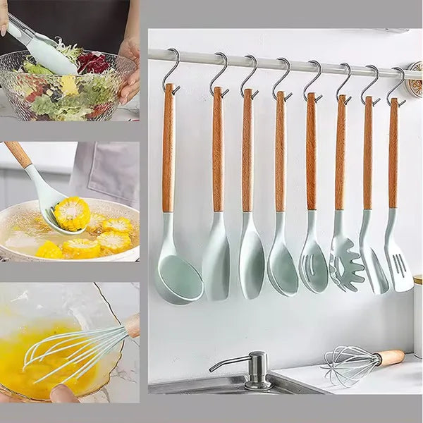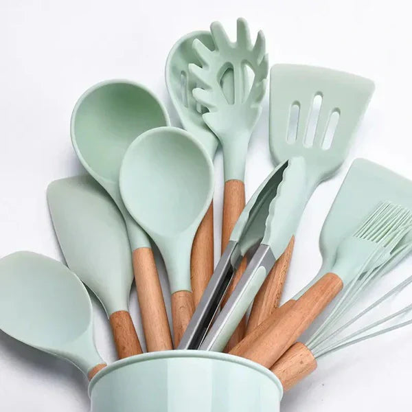 Sastavljen od visokokvalitetnog silikona, nerđajućeg čelika i drveta, ovaj set omogućava savršen balans između funkcionalnosti i dugotrajnosti, a elegantan dizajn uklapa se u svaki kuhinjski prostor.